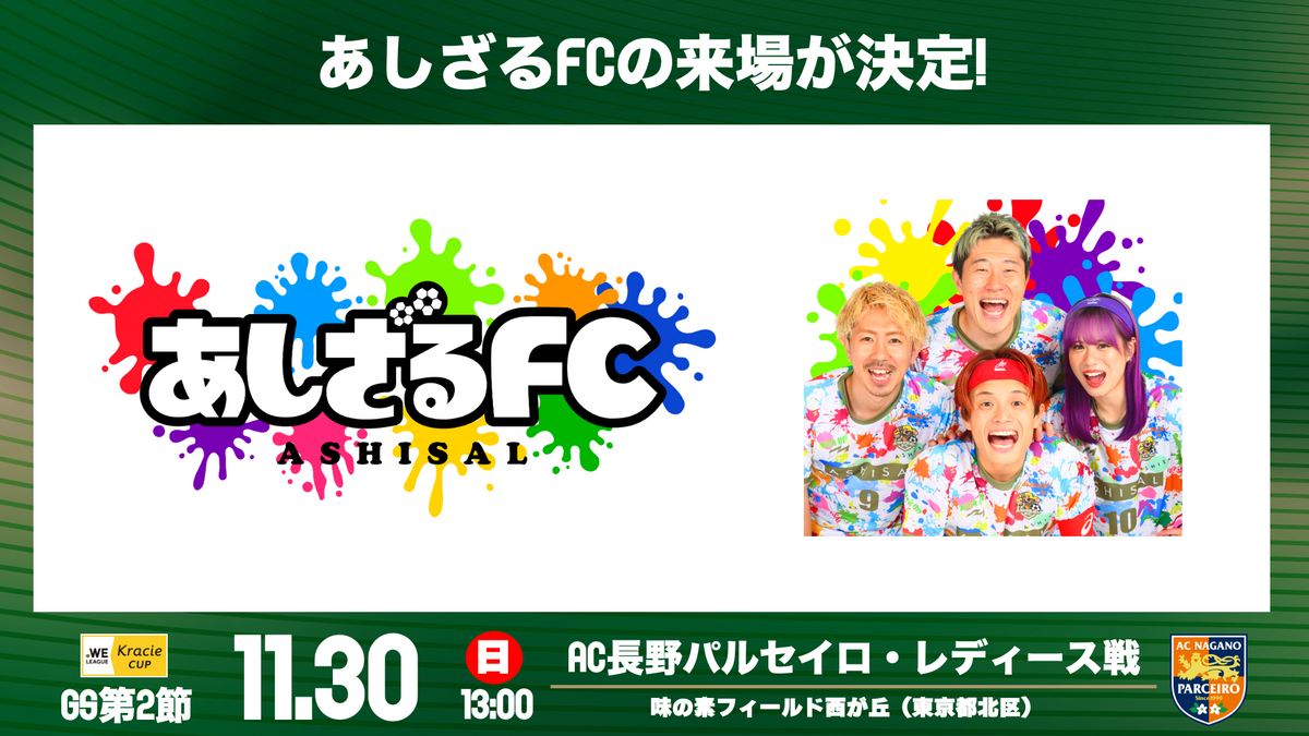 日テレ・東京ヴェルディベレーザ vs AC長野パルセイロ・レディース ゲスト出演!! 開催日:2025年11月30日(日)
