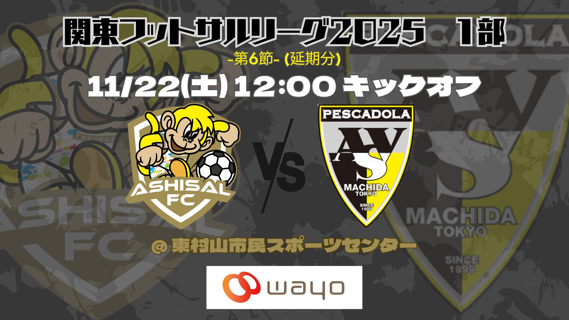【終了】関東フットサルリーグ1部 第6節(延期分) 開催日:11月22日(土)